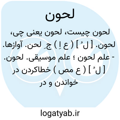 لغت نامه دهخدا لحون. [ ل ُ ] ( ع اِ ) ج ِ لحن. آوازها.- علم لحون؛ علم موسیقی.لحون. [ ل ُ ] ( ع مص ) خطاکردن در خواندن و در اعراب. لَحن. لَحَن. لحانة. لحانیة. ( منتهی الارب ).