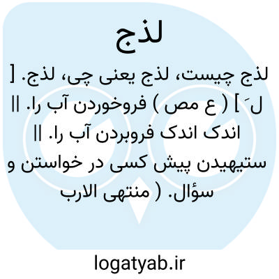 لذج. [ ل َ ] ( ع مص ) فروخوردن آب را. || اندک اندک فروبردن آب را. || ستیهیدن پیش کسی در خواستن و سؤال. ( منتهی الارب ).