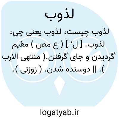 لغت نامه دهخدا لذوب. [ ل ُ ] ( ع مص ) مقیم گردیدن و جای گرفتن.( منتهی الارب ). || دوسنده شدن. ( زوزنی ).