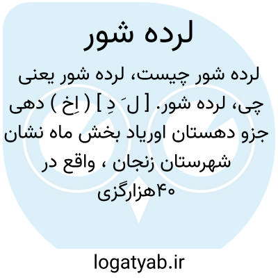 لرده شور. [ ل َ دِ ] ( اِخ ) دهی جزو دهستان اوریاد بخش ماه نشان شهرستان زنجان، واقع در 40هزارگزی شمال باختری ماه نشان. کنار راه مالروعمومی. دامنه. سردسیر. دارای 185 تن سکنه شیعه. آب آن از رود محلی. محصول آنجا غلات. شغل اهالی زراعت و راه آن مالرو است. ( از فرهنگ جغرافیایی ایران ج 2 ).