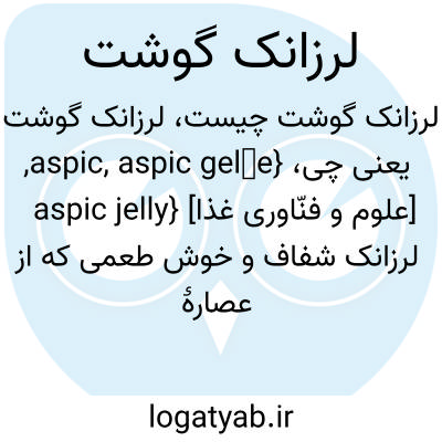 {aspic, aspic gelée, aspic jelly} [علوم و فنّاوری غذا] لرزانک شفاف و خوش طعمی که از عصارۀ رقیق (stock ) گوشت یا ماهی و اغلب با افزودن ژلاتین تولید میشود