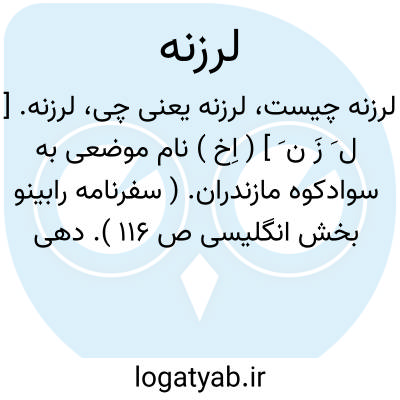 لرزنه. [ ل َ زَ ن َ ] ( اِخ ) نام موضعی به سوادکوه مازندران. ( سفرنامه رابینو بخش انگلیسی ص 116 ). دهی از دهستان بخش سوادکوه شهرستان ساری، واقع در چهارصد هزارگزی شمال آلاشت. در زمستان سکنه ندارد و در تابستان از دهستان لفور در حدوددویست نفر برای تعلیف احشام خود و استفاده از هوا به این ده می آیند. ( از فرهنگ جغرافیایی ایران ج 3 ).