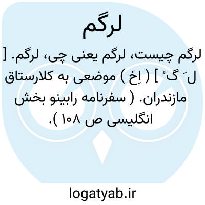 لرگم. [ ل َ گ ُ ] ( اِخ ) موضعی به کلارستاق مازندران. ( سفرنامه رابینو بخش انگلیسی ص 108 ).