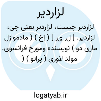 لغت نامه دهخدا لزاردیر. [ ل ِ ی ِ ] ( اِخ ) ( مادموازل ماری دو ) نویسنده ومورخ فرانسوی. مولد لاوری ( پراتو ) ( 1754-1835 م. ).