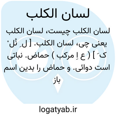 لسان الکلب. [ ل ِ نُل ْ ک َ ] ( ع اِ مرکب ) حماض. نباتی است دوائی. و حماض را بدین اسم باز خوانند. ( اختیارات بدیعی ). از گیاهان دولپه ای پیوسته گلبرگ و از تیره گاوزبانیان است، خشونت برگهای باریک آن بسیار و بواسطه سمیت کمتر مورد استعمال دارد. ( گیاه شناسی گل گلاب ص 242 ). نزد بعضی لسان الحمل و نزد جمعی حماض صغیر است و مذکور شد و نزد بعضی نباتی است برگش شبیه به برگ بارتنگ و درازتر و باتقعیر و بسیار نرم و اطرافش تند و ساقش زیاده بر دو ذرع و شعبه او بسیار و گره دار و باریک و گلش بنفش و تخمش باریک و اول تابستان میروید و منبتش حوالی آبهاست و بیخش سفید و پرشعبه و شعبها مثل ریسمان باریک و مشبک. در اول گرم و در دوم خشک و طبیخ او بقدر یک رطل رافع ( ؟ ) سپرز و ضمادش جهت التیام زخمهای تازه و گوشت آوردن زخمهای کهنه مؤثر است. ( تحفه حکیم مؤمن ).