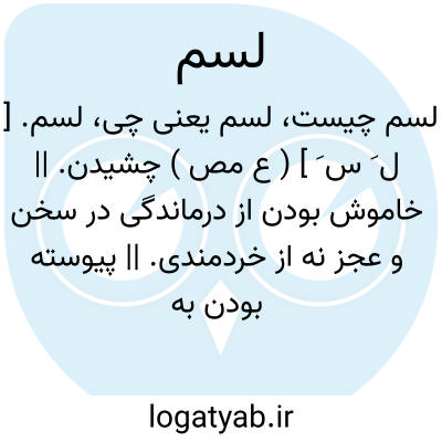 لسم. [ ل َ س َ ] ( ع مص ) چشیدن. || خاموش بودن از درماندگی در سخن و عجز نه از خردمندی. || پیوسته بودن به راهی. || لازم گرفتن. ( منتهی الارب ).