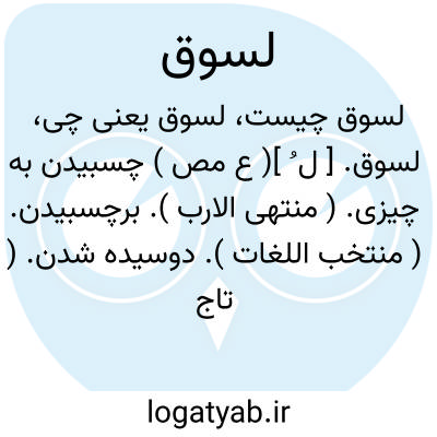 لسوق. [ ل ُ ]( ع مص ) چسبیدن به چیزی. ( منتهی الارب ). برچسبیدن. ( منتخب اللغات ). دوسیده شدن. ( تاج المصادر ) ( زوزنی ).