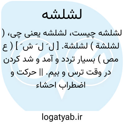 ( لشلشة ) لشلشة. [ ل َ ل َ ش َ ] ( ع مص ) بسیار تردد و آمد و شد کردن در وقت ترس و بیم. || حرکت و اضطراب احشاء جایی بعد جایی. ( منتهی الارب ).