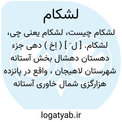 لشکام. [ ل َ ] ( اِخ ) دهی جزء دهستان دهشال بخش آستانه شهرستان لاهیجان، واقع در پانزده هزارگزی شمال خاوری آستانه و سه هزارگزی شمال دهشال. جلگه معتدل. مرطوب و مالاریائی.دارای 766 تن سکنه شیعه. گیلکی و فارسی زبان. آب آن از نهر لسکو کلایه از سفیدرود و استخر محلی. محصول برنج و کنف و ابریشم و ماهی. شغل اهالی زراعت و صید. راه آن مالرو است. ( از فرهنگ جغرافیایی ایران ج 2 ).