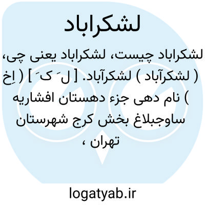 ( لشکرآباد ) لشکرآباد. [ ل َ ک َ ] ( اِخ ) نام دهی جزء دهستان افشاریه ساوجبلاغ بخش کرج شهرستان تهران، واقع در 24هزارگزی باختر کرج و هفت هزارگزی جنوب راه شوسه کرج به قزوین. جلگه، معتدل، دارای 295 تن سکنه شیعه. فارسی زبان. آب آن از قنات و رود کردان. محصول غلات و صیفی و بنشن و چغندر قند و لبنیات و انگور. شغل اهالی زراعت و راه آن مالرو است و از طریق پل کردان ماشین بدانجا توان برد. ( از فرهنگ جغرافیایی ایران ج 1 ).