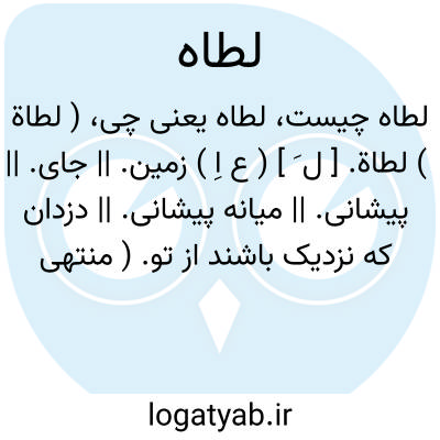 ( لطاة ) لطاة. [ ل َ ] ( ع اِ ) زمین. || جای. || پیشانی. || میانه پیشانی. || دزدان که نزدیک باشند از تو. ( منتهی الارب ). اللصوص یکونون بالقرب منک. ( اقرب الموارد ). || گرانی. یقال: القی بلطاته؛ ای بثقله. ( منتهی الارب ). || دائرةاللطاة؛ گردش موی که بر پیشانی اسب و جز آن باشد. ( منتهی الارب ). لطاط.