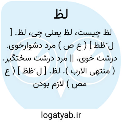 لظ. [ ل َظظ ] ( ع ص ) مرد دشوارخوی. درشت خوی. || مرد درشت سختگیر. ( منتهی الارب ).