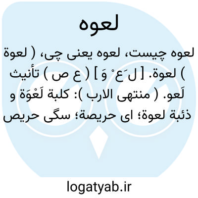 ( لعوة ) لعوة. [ ل َع ْ وَ ] ( ع ص ) تأنیث لَعو. ( منتهی الارب ): کلبة لَعْوَة و ذئبة لعوة؛ ای حریصة؛ سگی حریص و گرگی حریص. || سگ ماده. ( منتهی الارب ). || ( اِمص ) سیاهی گرداگرد سر پستان. ( منتهی الارب ). سیاهی. ( مهذب الاسماء ). || لعوةالجوع؛ تیزی و شدت گرسنگی. ( منتهی الارب ). لعت نفسی؛ غثت من الجوع. ( از دزی ). || ( اِخ ) ذولعوة، پادشاهی است از پادشاهان حمیر. ( منتهی الارب ). رجوع به ذولعوة شود.