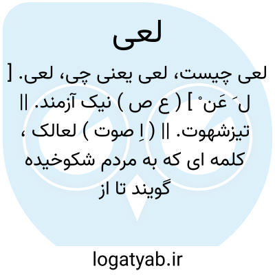 لعی. [ ل َ عَن ْ ] ( ع ص ) نیک آزمند. || تیزشهوت. || ( اِ صوت ) لعالک، کلمه ای که به مردم شکوخیده گویند تا از لغزش دروا شود. یقال: للعاثر لعالک؛ اذا دعا له بالانتعاش. ( منتهی الارب ).