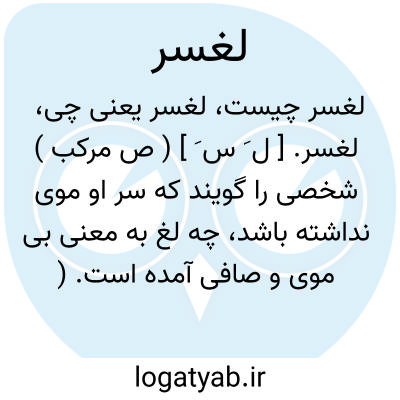 لغسر. [ ل َ س َ ] ( ص مرکب ) شخصی را گویند که سر او موی نداشته باشد، چه لغ به معنی بی موی و صافی آمده است. ( برهان ). آنکه بر سرش موی نباشد.