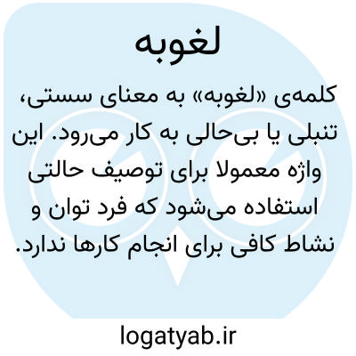 کلمه‌ی «لغوبه» در زبان فارسی به معنای سستی، تنبلی یا بی‌حالی به کار می‌رود. این واژه معمولاً برای توصیف حالتی استفاده می‌شود که فرد توان و نشاط کافی برای انجام کارها ندارد و حرکات او با نوعی کندی، بی‌میلی و بی‌حوصله‌گی همراه است. این واژه در معنایی نزدیک به «گولی» نیز به کار می‌رود. «گولی» حالتی است که بیشتر از آن‌که صرفاً به تنبلی جسمانی مربوط باشد، به نوعی کندی ذهنی اشاره دارد. در این حالت ذهن و بدن هر دو در سطحی پایین از هوشیاری کار می‌کنند؛ فرد ممکن است دیرتر متوجه مسائل شود، پاسخ‌های کندتر بدهد و نوعی گیجی ملایم یا خواب‌زدگی در رفتار و نگاه او دیده شود. بار معنایی «لغوبه» بیشتر غیررسمی است و در متن‌های رسمی یا نوشتارهای ادیبانه، به جای آن‌ها از واژه‌هایی دقیق‌تر و معیارتر همچون سستی، تنبلی، رخوت، کسالت یا بی‌حالی استفاده می‌شود.