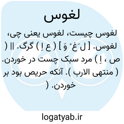 لغوس. [ ل َغ ْ وَ ] ( ع اِ ) گرگ. || ( ص، اِ ) مرد سبک چست در خوردن. ( منتهی الارب ). آنکه حریص بود بر خوردن. ( مهذب الاسماء ). || مرد آزمند. || دزد بسیار فریبنده پلیدطبع. || گیاهی است که ستور چرد آنرا. || گیاه سبک و تنک. || نهال که بجنبد از تری و تازگی. ( منتهی الارب ).