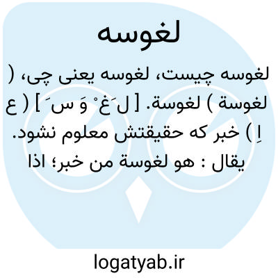 ( لغوسة ) لغوسة. [ ل َغ ْ وَ س َ ] ( ع اِ ) خبر که حقیقتش معلوم نشود. یقال: هو لغوسة من خبر؛ اذا لم یتحقق شی منه. ( منتهی الارب ).