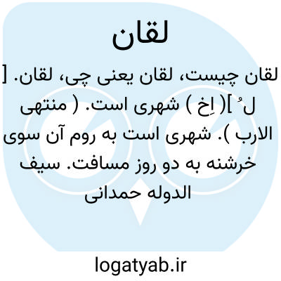 لقان. [ ل ُ ]( اِخ ) شهری است. ( منتهی الارب ). شهری است به روم آن سوی خرشنه به دو روز مسافت. سیف الدوله حمدانی را بدانجا جنگی است و متنبّی در تذکر آن گوید: