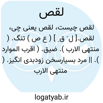 لقص.[ ل َ ق ِ ] ( ع ص ) تنگ. ( منتهی الارب ). ضیق. ( اقرب الموارد ). || مرد بسیارسخن زودبدی انگیز. ( منتهی الارب ). || مردم حریص. ( مهذب الاسماء ).