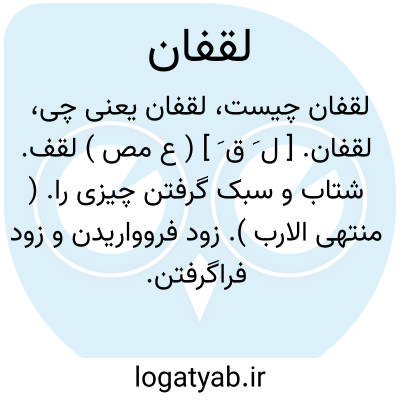 لقفان. [ ل َ ق َ ] ( ع مص ) لقف. شتاب و سبک گرفتن چیزی را. ( منتهی الارب ). زود فروواریدن و زود فراگرفتن. ( زوزنی ).