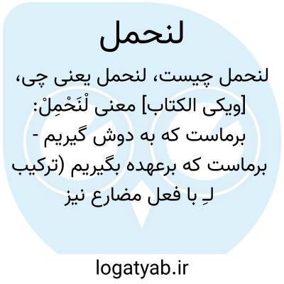 [ویکی الکتاب] معنی لْنَحْمِلْ: برماست که به دوش گیریم - برماست که برعهده بگیریم (ترکیب لـِ با فعل مضارع نیز فعل امر می سازد و چنانچه قبل از آن حروف ربط "وَ"،"ثُمَّ" یا "فـَ" بیاید، این لام ساکن می شود مثل "وَلْنَحْمِلْ")