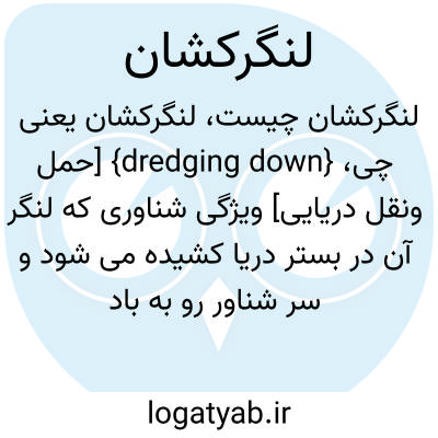 {dredging down} [حمل ونقل دریایی] ویژگی شناوری که لنگر آن در بستر دریا کشیده می شود و سر شناور رو به باد یا جریان آب است