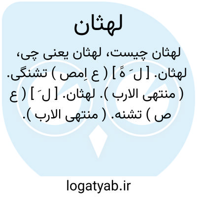 لغت نامه دهخدا لهثان. [ ل َ هََ ] ( ع اِمص ) تشنگی. ( منتهی الارب ).لهثان. [ ل َ ] ( ع ص ) تشنه. ( منتهی الارب ).