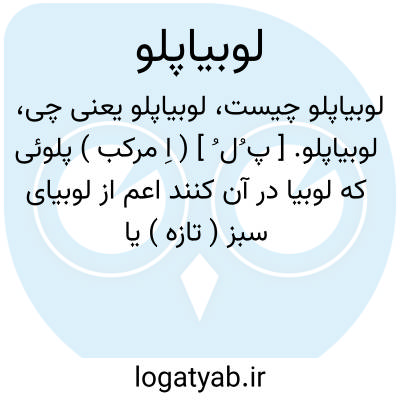 ( اسم ) پلوی که لوبیا در آن کنند. طریق. آن چنین است: لوبیا ( خواه لوبیای سبز تازه یا دان. لوبیای خشک کرده ) راجداگانه جوشانیده پوست آنرا گرفته مقشر سازند و قبل از برنج در دیگ ریزند. همینکه پخته شد برنج را ریخته و صاف کرده بطریق پلو دم کنند.