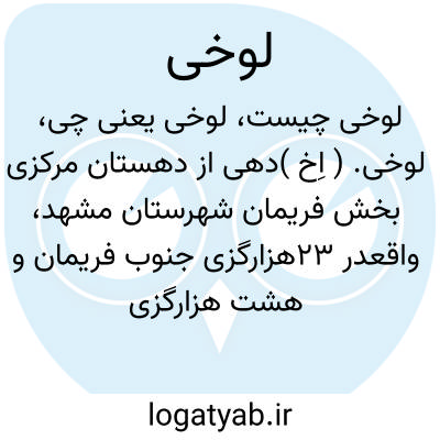 لوخی. ( اِخ )دهی از دهستان مرکزی بخش فریمان شهرستان مشهد، واقعدر 23هزارگزی جنوب فریمان و هشت هزارگزی خاوری راه مالرو عمومی فریمان به پاقلعه. کوهستانی و معتدل. دارای 93 تن سکنه. آب آن از قنات. محصول آنجا غلات، چغندر و بنشن. شغل اهالی زراعت، راه آن مالرو و در تابستان اتومبیل رو است. ( از فرهنگ جغرافیائی ایران ج 9 ).