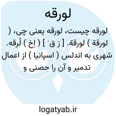 ( لورقة ) لورقة. [ رَ ق َ ] ( اِخ ) لُرقه. شهری به اندلس ( اسپانیا ) از اعمال تدمیر و آن را حصنی و معقلی محکم باشد. ( از معجم البلدان ). شهری در جنوب شرقی مرُسیة. ( نفح الطیب ).
