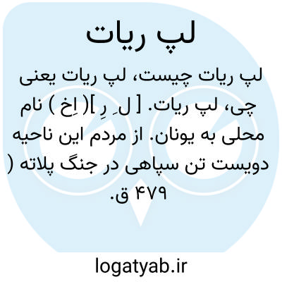 لپ ریات. [ ل ِ رِ ]( اِخ ) نام محلی به یونان. از مردم این ناحیه دویست تن سپاهی در جنگ پلاته ( 479 ق. م. ) شرکت داشته اند. ( ایران باستان ج 1 ص 844 ).