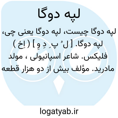 لپه دوگا. [ ل ُ پ ِ دِ وِ ] ( اِخ ) فلیکس. شاعر اسپانیولی، مولد مادرید. مؤلف بیش از دو هزار قطعه تآتر فکاهی و غم انگیز که نماینده قوه تخیل و تصور فوق العاده اوست. و بهمین سبب او را عنقای اسپانی و اعجوبه دنیا لقب کرده اند. ( 1562 - 1635 م. ).