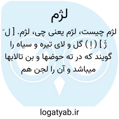 لژم. [ ل َ ژَ ] ( اِ ) گل و لای تیره و سیاه را گویند که در ته حوضها و بن تالابها میباشد و آن را لجن هم میگویند. ( برهان ). لجم. خرّ. خرّه. حَمَاء. لجن. لوش. لژن. رجوع به دو کلمه اخیر شود.