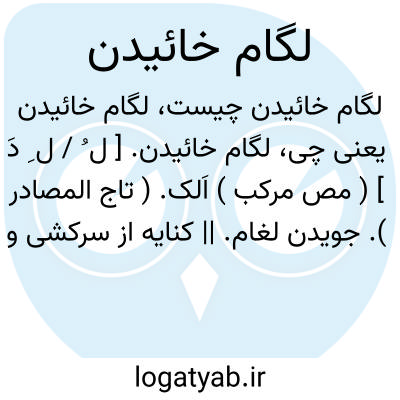 لگام خائیدن. [ ل ُ / ل ِ دَ ] ( مص مرکب ) اَلک. ( تاج المصادر ). جویدن لغام. || کنایه از سرکشی و نافرمانی کردن باشد. ( برهان ). مقابل لگام لیسیدن. ( آنندراج ):