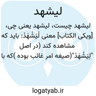 [ویکی الکتاب] معنی لْیَشْهَدْ: باید که مشاهده کند (در اصل "لِیَشْهَدْ"(صیغه امر غائب بوده )که با اضافه شدن واو برای سهولت لام ساکن شده است )