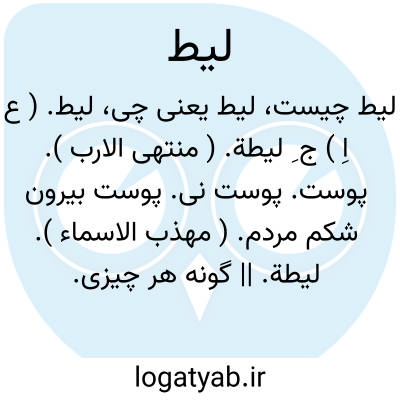 لیط. ( ع اِ ) ج ِ لیطة. ( منتهی الارب ). پوست. پوست نی. پوست بیرون شکم مردم. ( مهذب الاسماء ). لیطة. || گونه هر چیزی. || خوی و عادت. لیطة. ( منتهی الارب ).