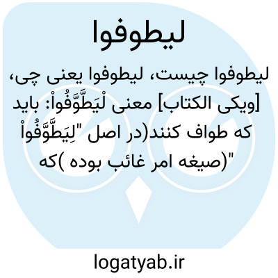 [ویکی الکتاب] معنی لْیَطَّوَّفُواْ: باید که طواف کنند(در اصل "لِیَطَّوَّفُواْ "(صیغه امر غائب بوده )که با اضافه شدن واو برای سهولت لام ساکن شده است. معنای طواف کردن، دور چیزی گردش کردن است، که از یک نقطه نسبت به آن چیز شروع شود و به همان نقطه برگردد لذا معنای طواف در عبارت "وَلْیَطَّ...