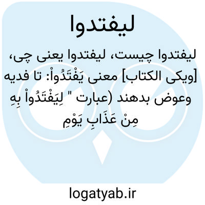 [ویکی الکتاب] معنی یَفْتَدُواْ: تا فدیه وعوض بدهند (عبارت " لِیَفْتَدُواْ بِهِ مِنْ عَذَابِ یَوْمِ ﭐلْقِیَامَةِ " یعنی: تا آن را برای نجاتشان از عذاب روز قیامت عوض دهند)