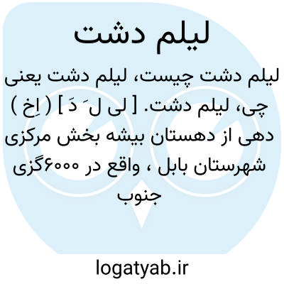 لیلم دشت. [ لی ل َ دَ ] ( اِخ ) دهی از دهستان بیشه بخش مرکزی شهرستان بابل، واقع در 6000گزی جنوب خاوری بابل و 1000گزی خاور راه شوسه بابل به گنج افروز. دشت، معتدل، مرطوب و مالاریائی. دارای 20 تن سکنه. آب آن ازرود بابل و محصول آنجا برنج است. ( از فرهنگ جغرافیائی ایران ج 3 ) ( سفرنامه رابینو بخش انگلیسی ص 118 ).