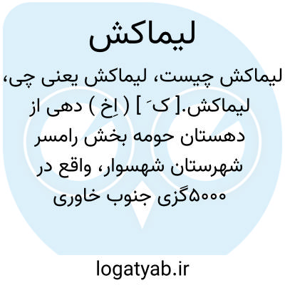 لیماکش.[ ک َ ] ( اِخ ) دهی از دهستان حومه بخش رامسر شهرستان شهسوار، واقع در 5000گزی جنوب خاوری رامسر. کوهستانی جنگل، معتدل، مرطوب و مالاریائی. دارای 65 تن سکنه. آب آن از چشمه. محصول آنجا لبنیات و چای. شغل اهالی گله داری و راه آن مالرو است. اهالی تابستان به ییلاق جواهرده میروند. ( از فرهنگ جغرافیائی ایران ج 3 ).