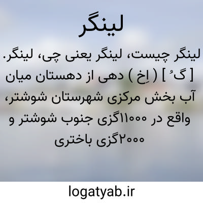لینگر. [ گ ُ ] ( اِخ ) دهی از دهستان میان آب بخش مرکزی شهرستان شوشتر، واقع در 11000گزی جنوب شوشتر و 2000گزی باختری راه تابستانی شوشتر به بندقیر. دشت، گرمسیر و مالاریائی. دارای 170 تن سکنه. آب آن از کارون. محصول آنجا غلات، برنج، صیفی و کنجد. شغل اهالی زراعت و راه آن در تابستان اتومبیل رو است. ( از فرهنگ جغرافیائی ایران ج 6 ).