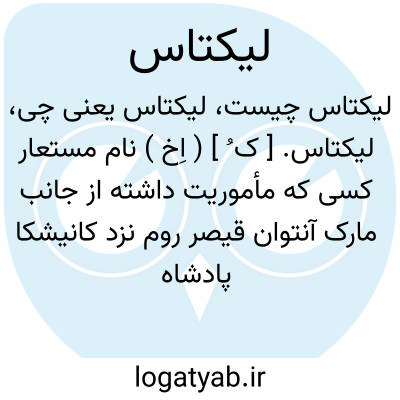 لیکتاس. [ ک ُ ] ( اِخ ) نام مستعار کسی که مأموریت داشته از جانب مارک آنتوان قیصر روم نزد کانیشکا پادشاه قسمتی از هند برود، باب روابط دوستانه با وی بگشاید. و پروپرس شاعر ازوی نام برده است. ( احوال و اشعار رودکی ج 1 ص 159 ).