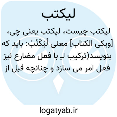 [ویکی الکتاب] معنی لْیَکْتُبْ: باید که بنویسد(ترکیب لـِ با فعل مضارع نیز فعل امر می سازد و چنانچه قبل از آن حروف ربط "وَ"،"ثُمَّ" یا "فـَ" بیاید، این لام ساکن می شود مثل "فَلْیَکْتُبْ")