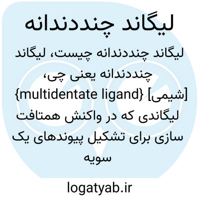 {multidentate ligand} [شیمی] لیگاندی که در واکنش همتافت سازی برای تشکیل پیوندهای یک سویه توانایی دادن دوجفت الکترون یا بیشتر را دارد