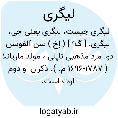 لیگری. [ گ ُ ] ( اِخ ) سن آلفونس دو. مرد مذهبی ناپلی، مولد ماریانلا ( 1696-1787 م. ). ذکران او دوم اوت است.