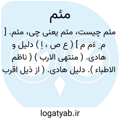 مئم. [ م ِ ءَم م ] ( ع ص، اِ ) دلیل و هادی. ( منتهی الارب ) ( ناظم الاطباء ). دلیل هادی. ( از ذیل اقرب الموارد ). || شتری که پیشرو شتران قافله باشد. مؤنث آن مِئَمَّة.( منتهی الارب ) ( ناظم الاطباء ). شتر نری که پیشرو شتران نر باشد. مؤنث آن مئمة. ( از ذیل اقرب الموارد ).