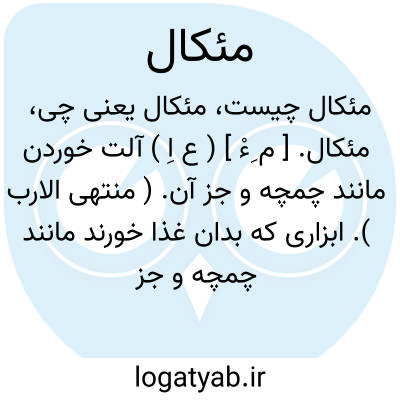 لغت نامه دهخدا مئکال. [ م ِءْ ] ( ع اِ ) آلت خوردن مانند چمچه و جز آن. ( منتهی الارب ). ابزاری که بدان غذا خورند مانند چمچه و جز آن.( ناظم الاطباء ). ملعقه. ج، مآکیل. ( اقرب الموارد ).