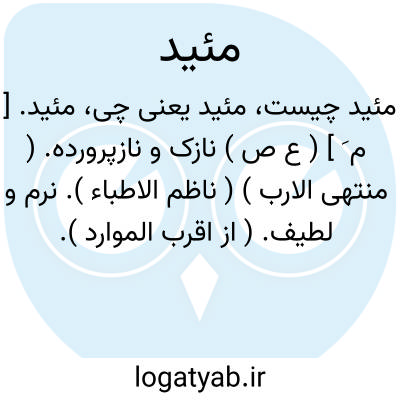 مئید. [ م َ ] ( ع ص ) نازک و نازپرورده. ( منتهی الارب ) ( ناظم الاطباء ). نرم و لطیف. ( از اقرب الموارد ).