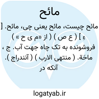 مائح. [ ءِ ] ( ع ص ) ( از «م ی ح » ) فروشونده به تک چاه جهت آب. ج، ماحَة. ( منتهی الارب ) ( آنندراج ). آنکه در تک چاه شود تا دول را آب کند. ج، ماحة. ( ناظم الاطباء ).